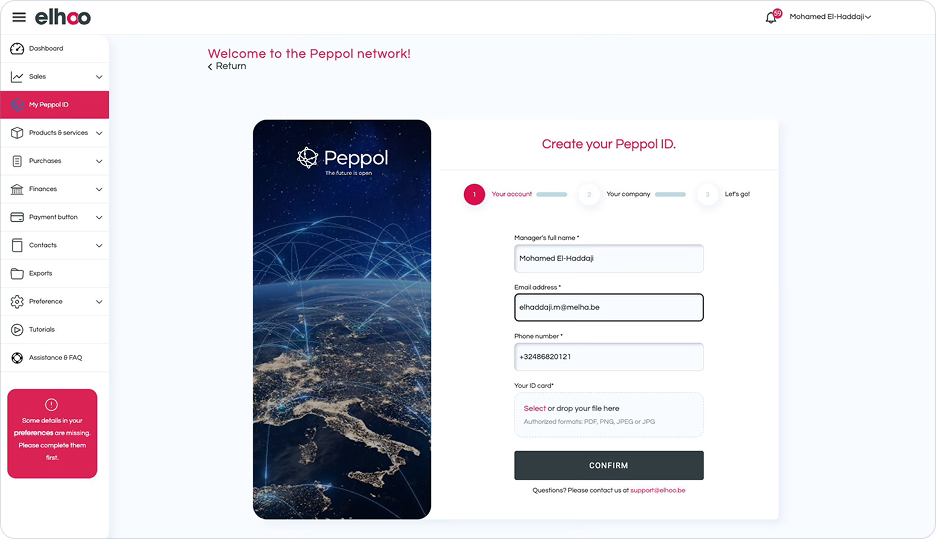 As a Peppol access point, we are required to verify your identity. This verification is mandatory to ensure the security of the Peppol network and to guarantee that electronic invoices are issued by duly identified companies.