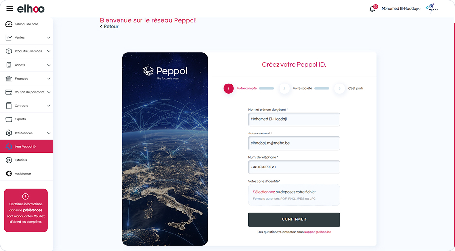 En tant que Peppol access point, nous avons l’obligation de vérifier votre idenité. Cette vérification est obligatoire pour garantir la sécurité du réseau Peppol et assurer que les factures électroniques sont émises par des entreprises dûment identifiées.