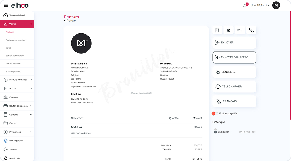 Grâce à Elhoo, vous envoyez et recevez vos factures sur le réseau Peppol en quelques clics. Plus de formats compliqués ni de contraintes légales : tout est déjà prêt pour vous.